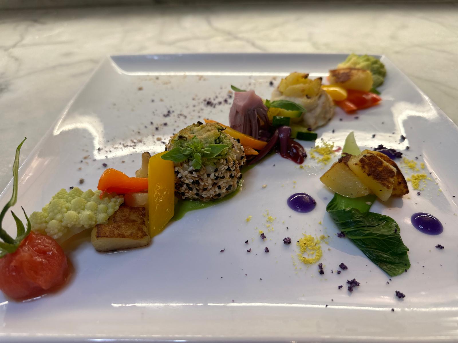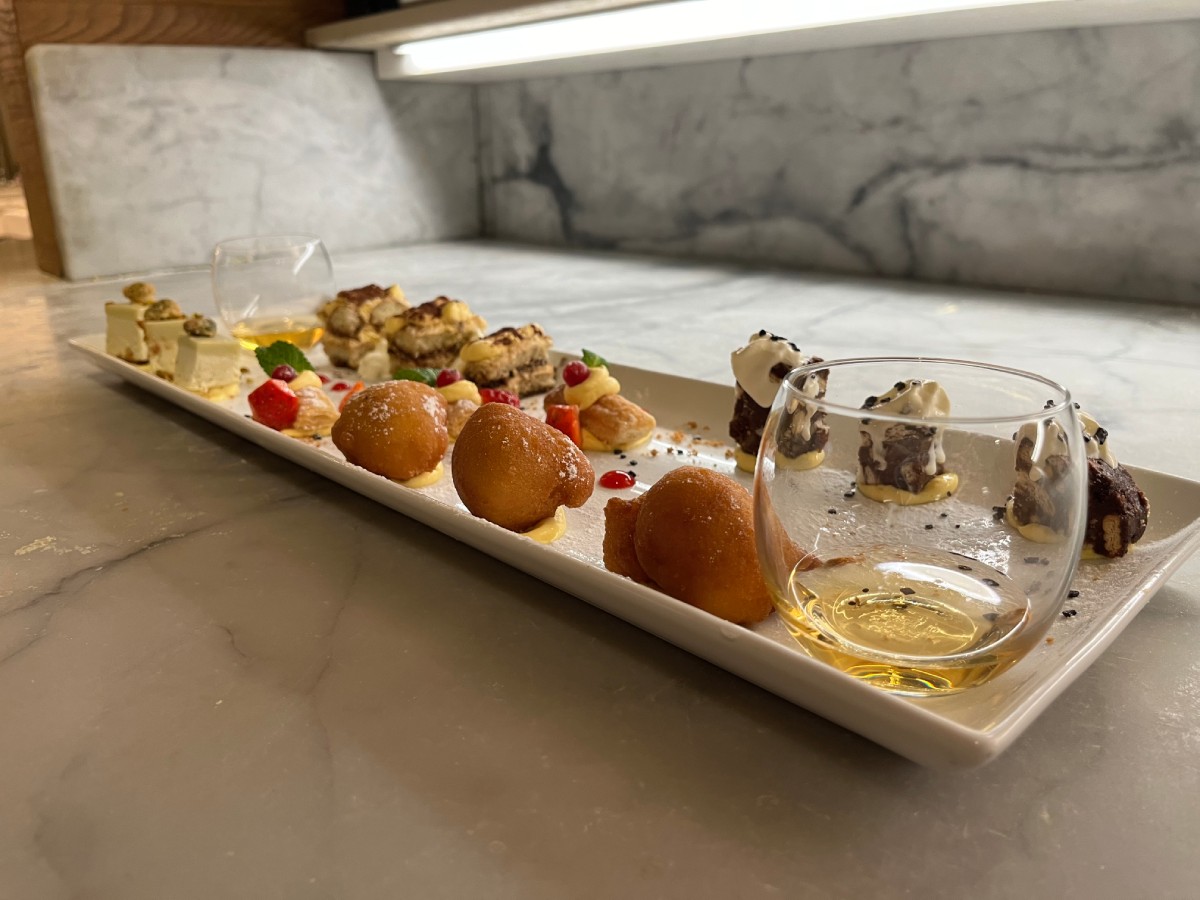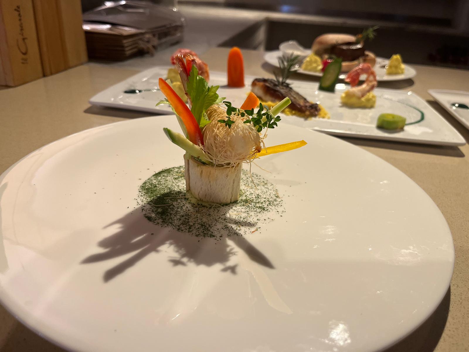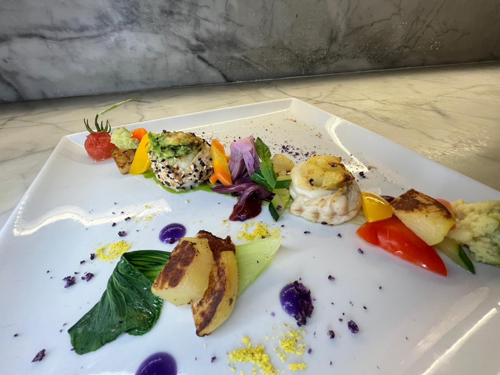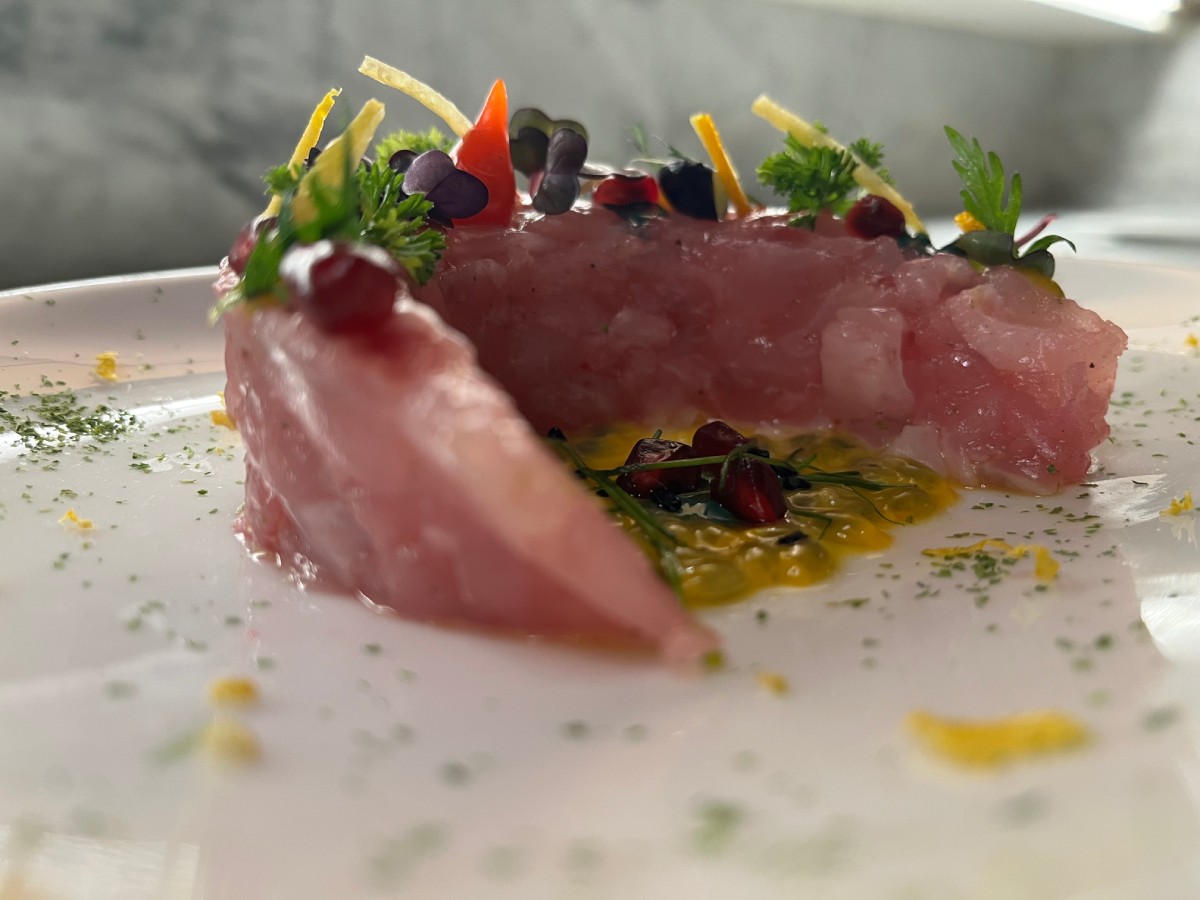 Baccalà mantecato, Scampo in volo, Tataki di Tonno in crosta di Sesamo, Calamaro Cacciarolo Arricciato e Carpaccio di Pesce Spada Marinato