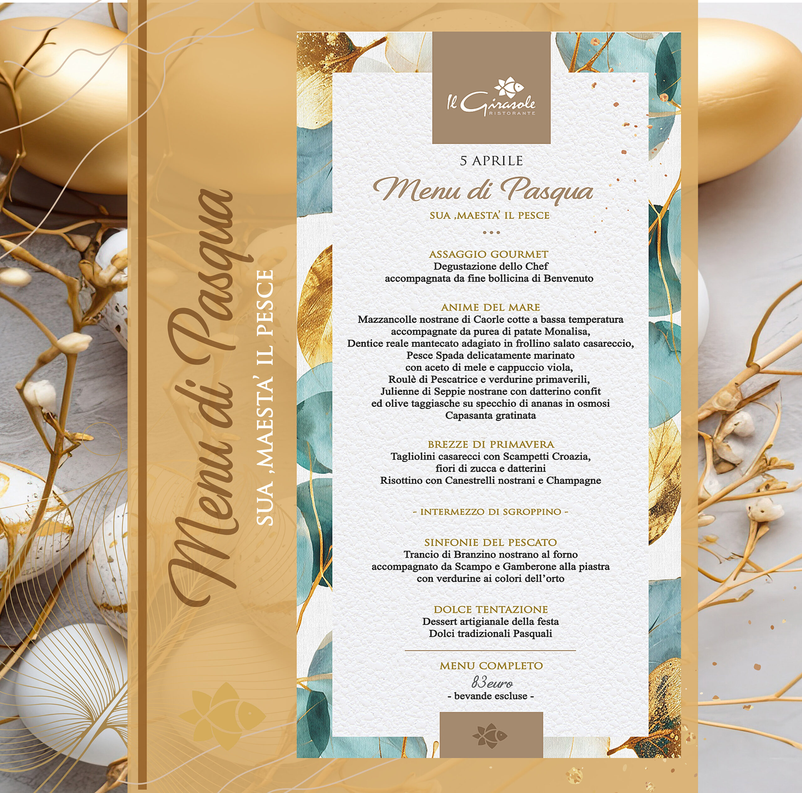 Per il pranzo del 5 Aprile, abbiamo curato nei minimi dettagli un menu esclusivo nato dall’incontro tra la freschezza dell’Adriatico e i colori della primavera.